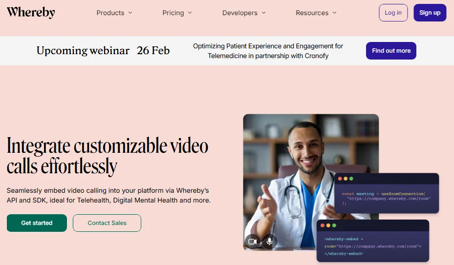 Whereby is suitable for web development teams as it allows developers to add video calling to a website in a few simple steps. It is known for being a user-friendly video conferencing solution that provides security, customization, and reliability to its users.